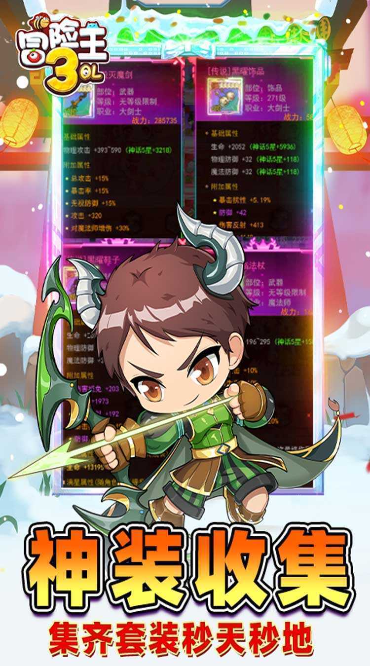 《冒险王3OL(0.1折怀旧服)》是冒险王手游系列的又一新品,传承了冒险王系列手游的经典玩法和美术风格。上线就送免费充值工具,直接免费激活首充,还能激活所有福利卡拿海量资源,每日累充,充全部激活,全场0.1折购买,拿海量金币且激活游戏内大量累充活动,拿极品奖励!每天登录活跃就可领取海量充值卡!百万充值卡上亿彩钻等你来拿!充值卡直接激活贵族VIP!神级还原了吸怪的经典玩法,Q萌Boss满身神装等你爆,还有数千种时尚搭配。神秘的未知大陆,Q萌的冒险世界,快来和小伙伴们一起找回最初的快乐吧!