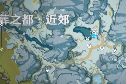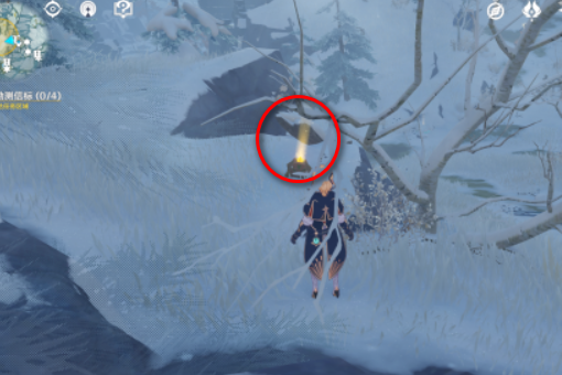 1、首先来到原神的雪山下图位置,四个位置在下图的牛头标志处,大家打开元素视野,查看发光的东西,就是勘测坐标了。