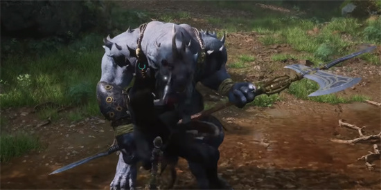 1、牯护院武器是一件长柄斧钺,会将斧钺埋在土里,向前冲刺一段距离后上挑。