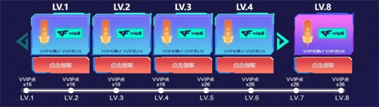 1、每升一级都可以获得VVIP令牌*1,最多获得8个。