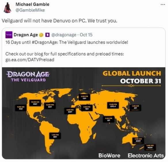 龙腾世纪影障守护者是否采用D加密技术,令人意外的是,此款作品并未采用D加密。EA此次打破常规,在新作中未设置D加密。我们可预见其或将荣膺2024年最佳RPG之列,乃至年度游戏桂冠。龙腾世纪影障守护者有没有D加密1、游戏制作人Michael Gamble对外声明,新作无D加密。