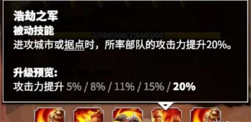 进攻城市或据点时,所率部队的攻击力提升20%。