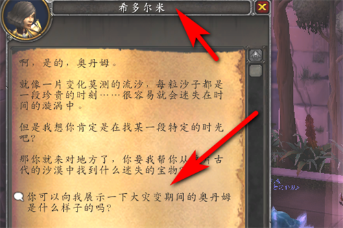 4、如果想去旧世界的奥丹姆需要同坐标(56,35.2)的希多尔米对话,就可以回到旧的奥丹姆了。