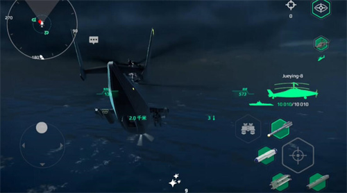 绝影8的核心功能是侦查,雷达范围达到4公里,比卡叉叉(3.5公里)更广,能更快发现敌方潜艇、驱逐舰等目标。速度约85节,属于中上水平,适合快速绕场探测。武器方面,导弹伤害较低(单发约1万),火箭炮射速一般,主要作为辅助输出。相比其他直升机,它的优势是“点灯快”,但打伤害依赖主战舰配合。