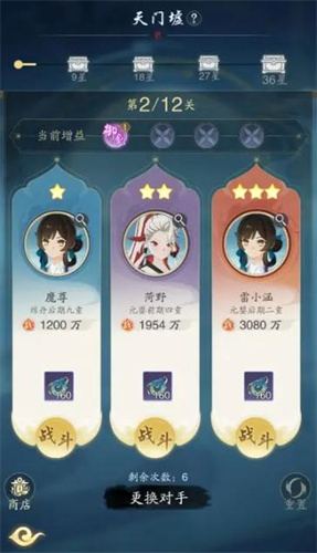 1、天门墟共有12层,每层随机出3个难度的玩家镜像可供挑战