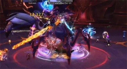 3、并且还会点名多个玩家挂上虫群dot,需要在瘦boss的特殊技能读条时在中场集合驱散。