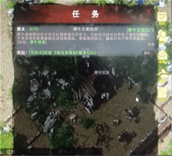 4、最重要一点,必须把主线任务清完,才能把当前级别不同奖励侠义任务刷新出来,教训就是测试时候没做完主线(打老虎),3级侠义任务卡在犀牛黑牛任务一个星期,这两个只给钱币。其他的给药的给经验的任务都不出现。药的侠义任务给1500个,亏死。