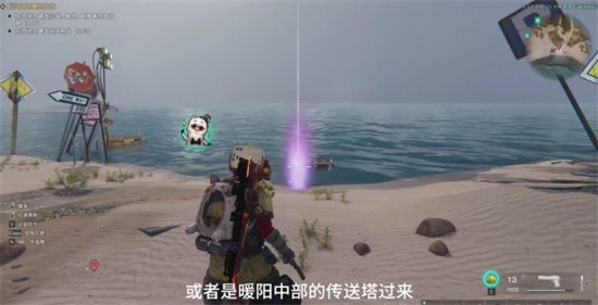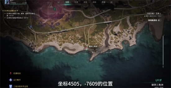 1、打开地图前往破碎三角洲左下角,然后从三角洲南岸传送塔来到下图位置