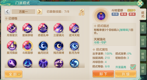 斗转星移:有概率使多个目标陷入被嘲讽状态,被嘲讽时招式将强制对自己释放。起到多封控场的效果,还能帮助自己积攒战气。