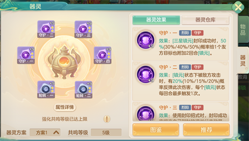 守护器灵套装:守护器灵套装是一套可以强化自身生存能力、并将生存和抗封能力转化给队友的器灵,且这套器灵可以移除自身的负面状态,降低对方一速封印的限制收益。此外,该套装在被攻击时能触发回血、回怒等一系列保护,搭配上嘲讽招式,在稳定触发收益的同时也为队友提供舒适的输出环境。